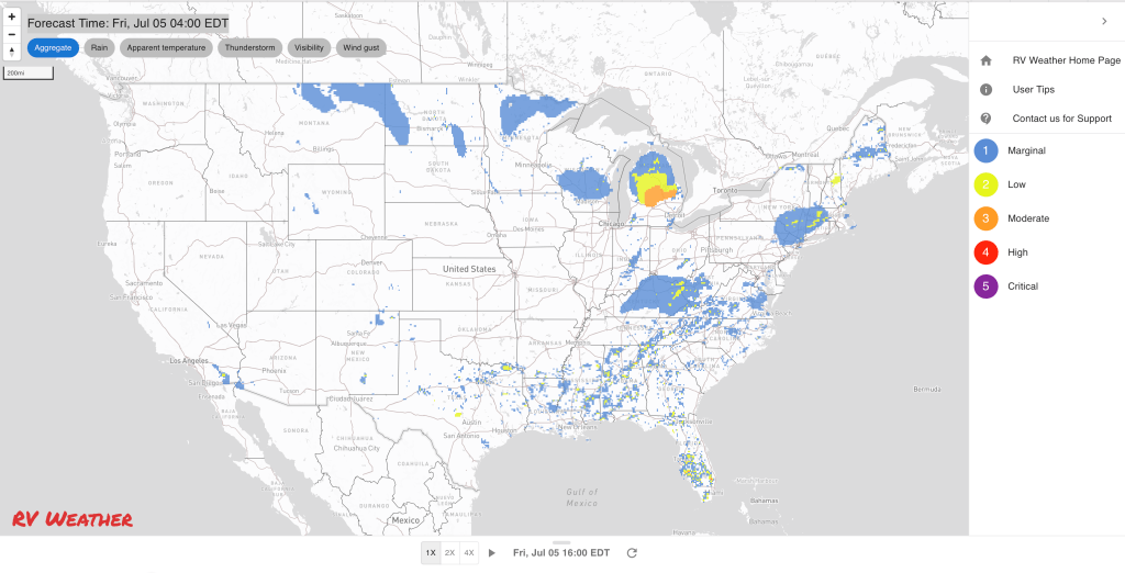 These are the most significant weather impacts to RV travel over the next two to three days. I do not list every area of rain, showers, or breezy winds. It would be exhausting (for both of us!).