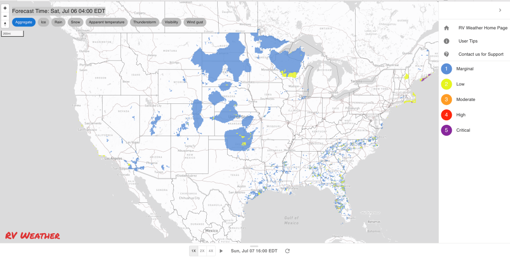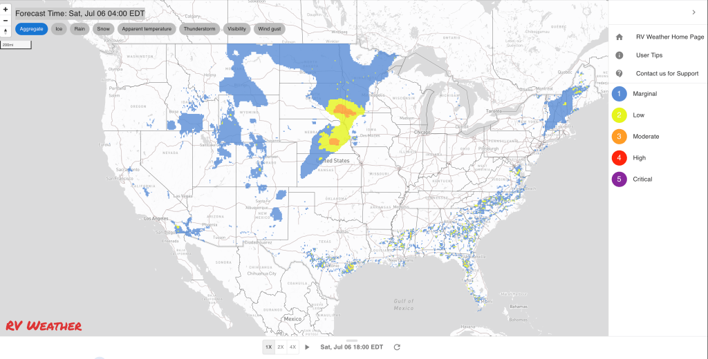 These are the most significant weather impacts to RV travel over the next two to three days. I do not list every area of rain, showers, or breezy winds. It would be exhausting (for both of us!).