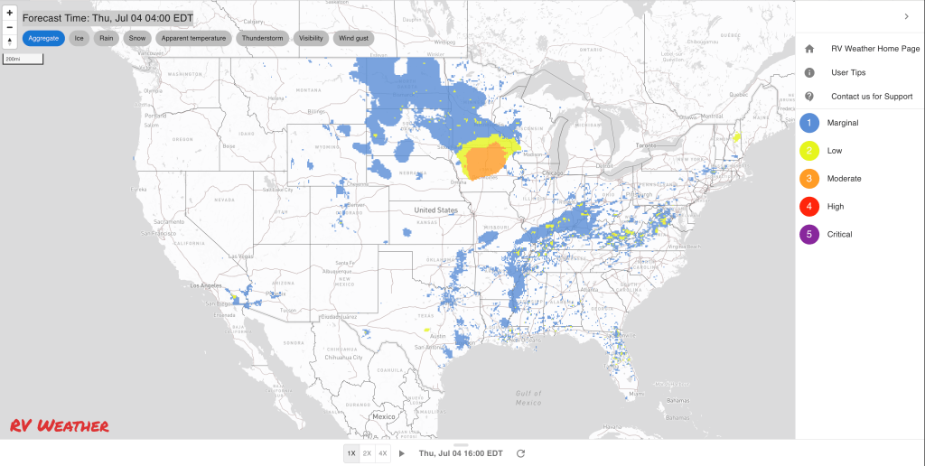 These are the most significant weather impacts to RV travel over the next two to three days. I do not list every area of rain, showers, or breezy winds. It would be exhausting (for both of us!).