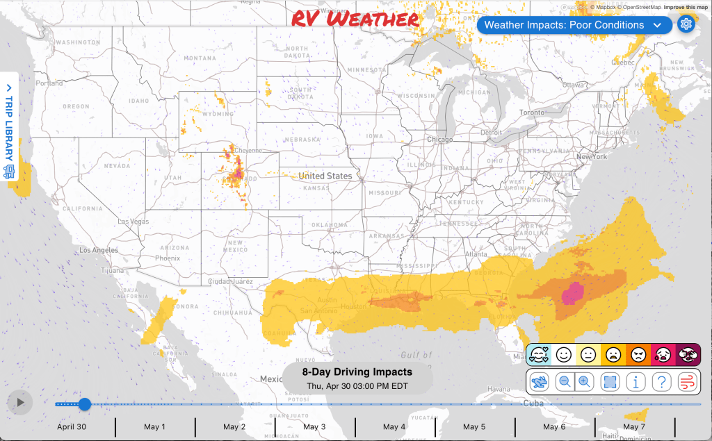 — No significant weather impacts to RV travel today or Friday.